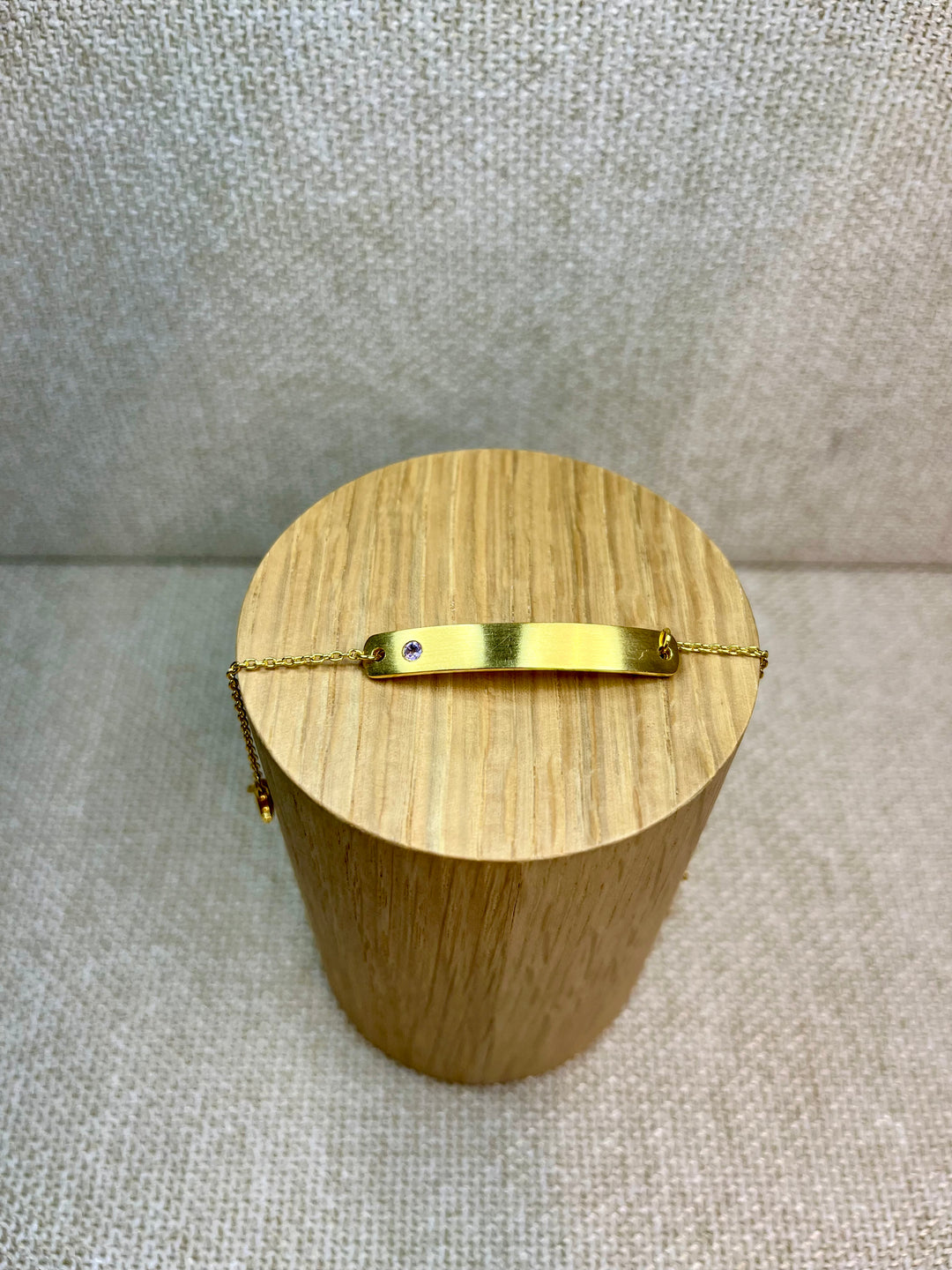 By Biehl, forgyldt plade armbånd m. lilla sten.