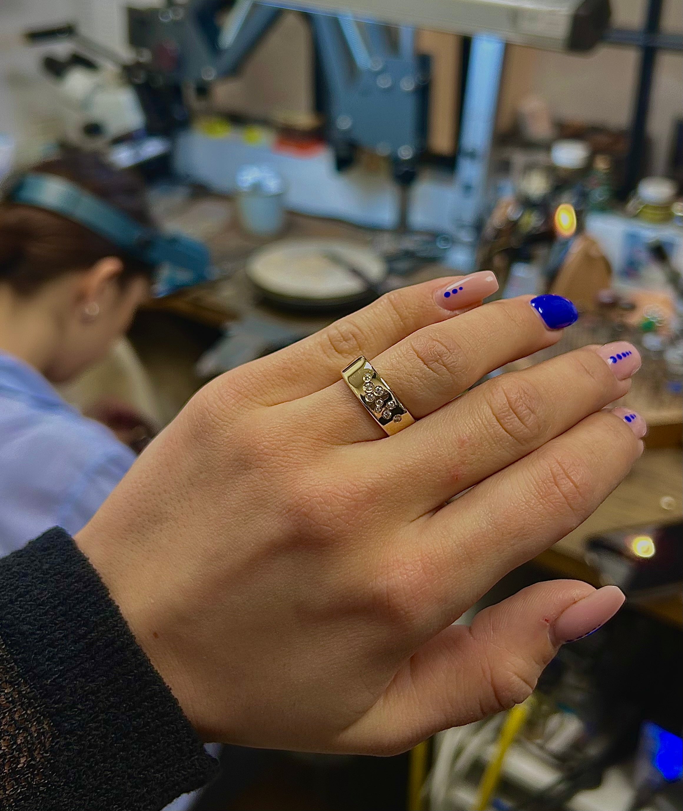 Ofte har vi på værkstedet en specielopgave, hvor vores kunde ønsker at få omsmeltet sit gamle guldsmykke til noget andet- og i smykket kunne også være stene - typisk diamanter.