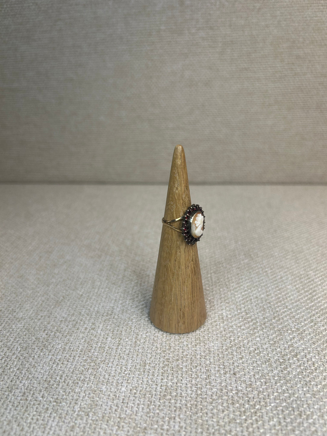 8 kt. Guldring m. came dame.