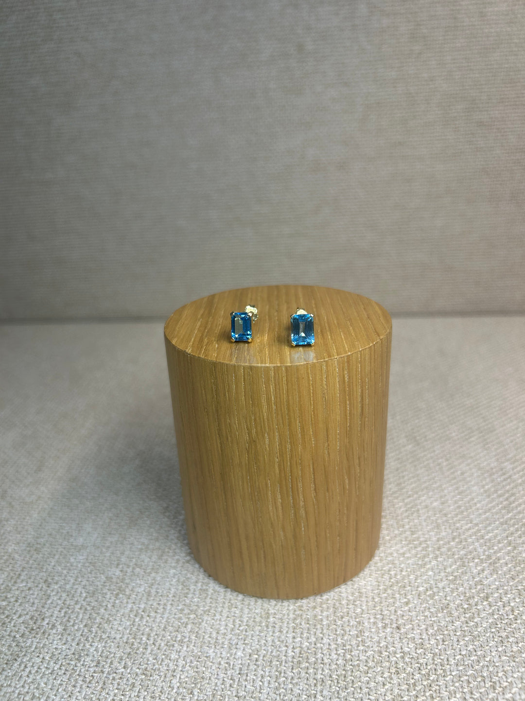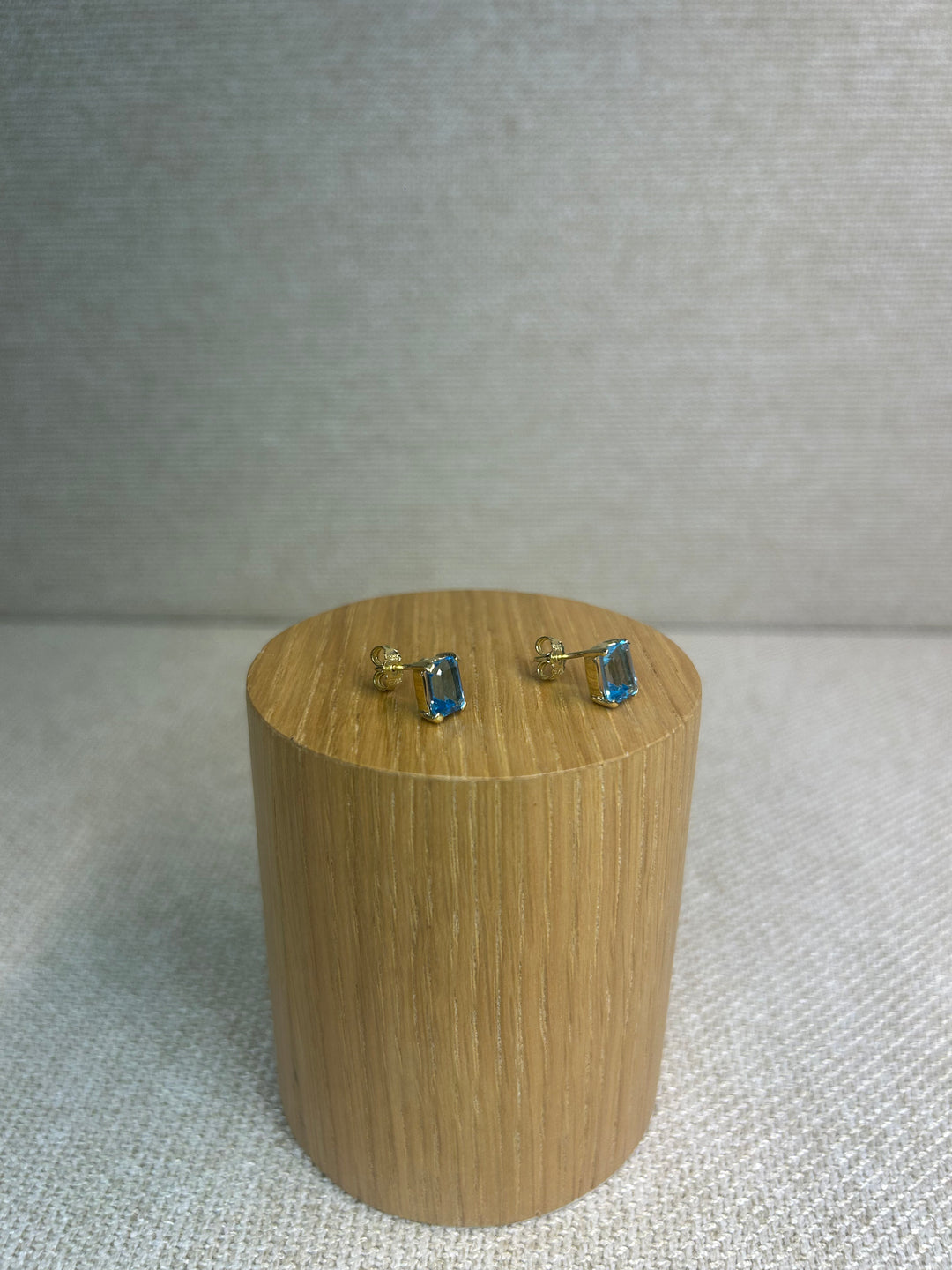 14 kt. Ørestikker m. lyse blå firkantet sten.