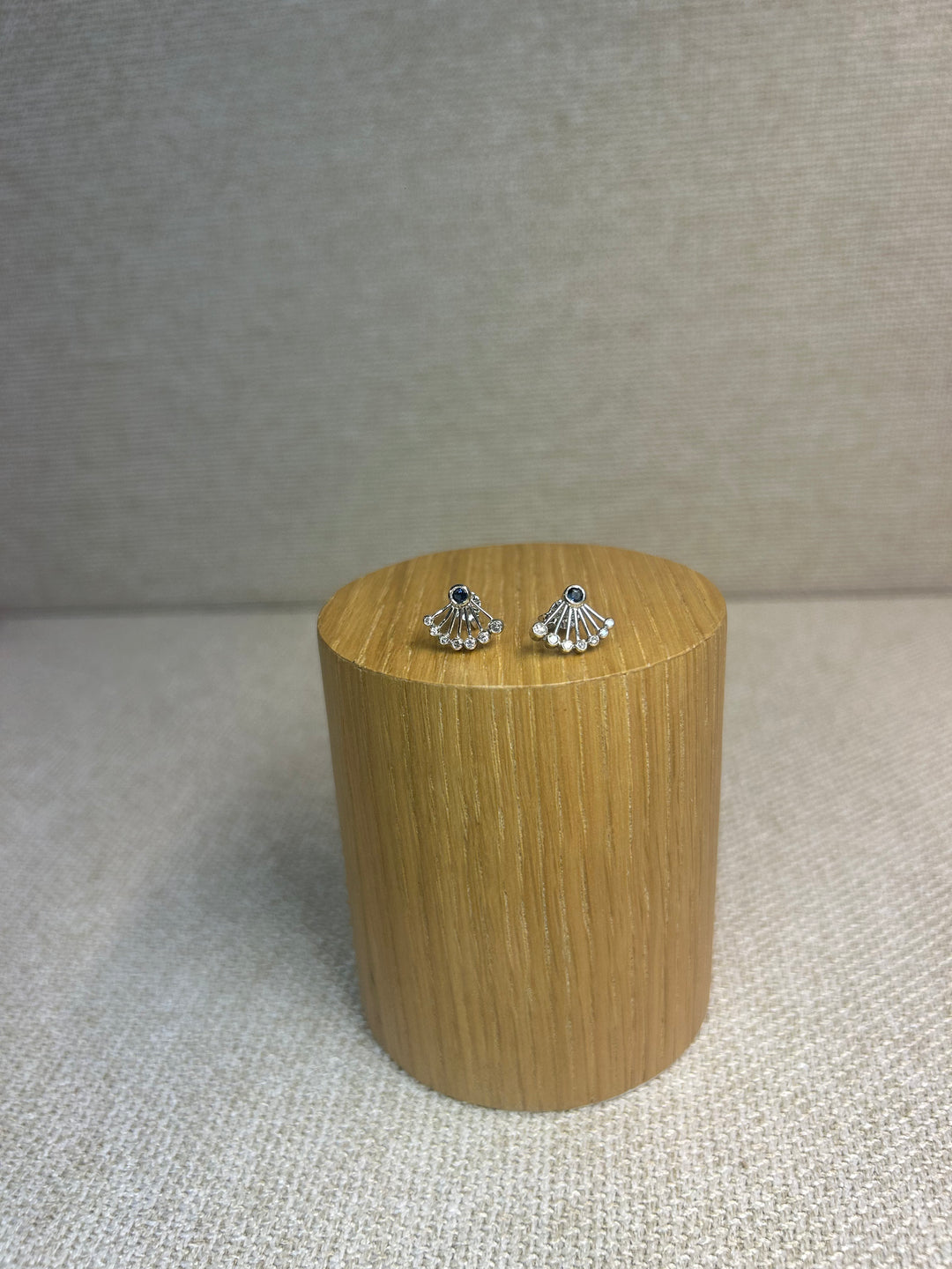 18 kt. Hvidgulds ørestikker m. safir og 14 diamanter.