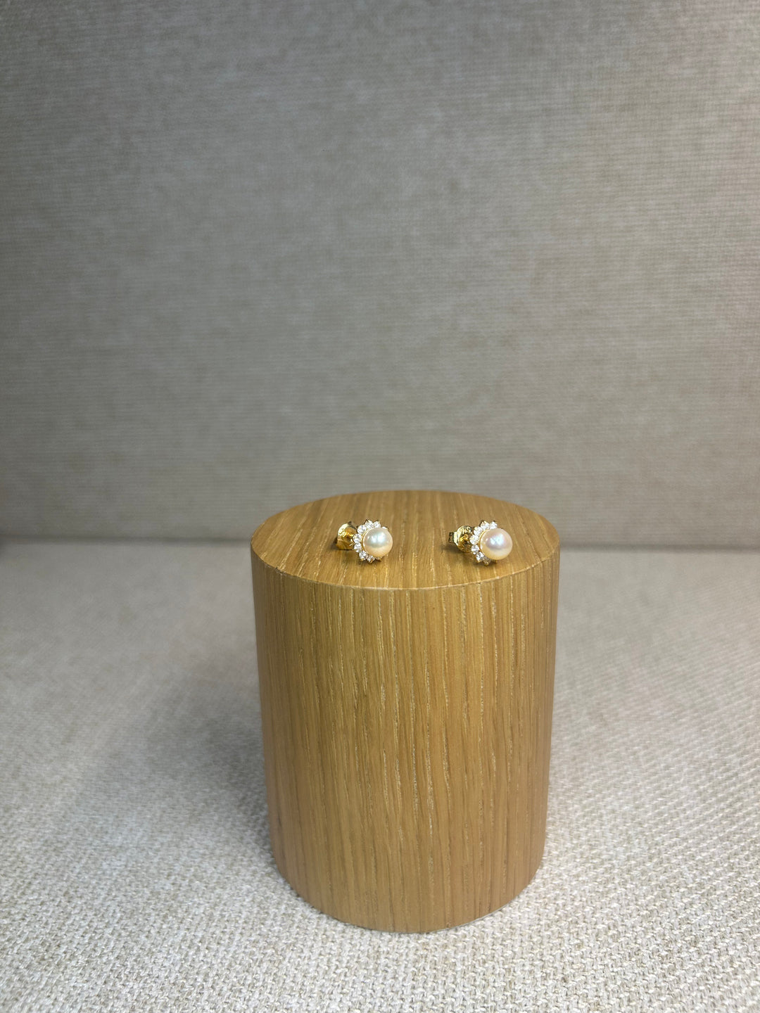 18 kt. Ørestikker m. kulturperler 6mm og zirk.