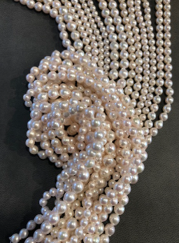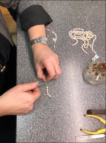 Vi anbefaler, at få lavet knuder imellem perlerne, da dette forhindrer dem i at slide hinanden op og samtidig sikrer du kun at kunne miste en perle, hvis snoren knækker.