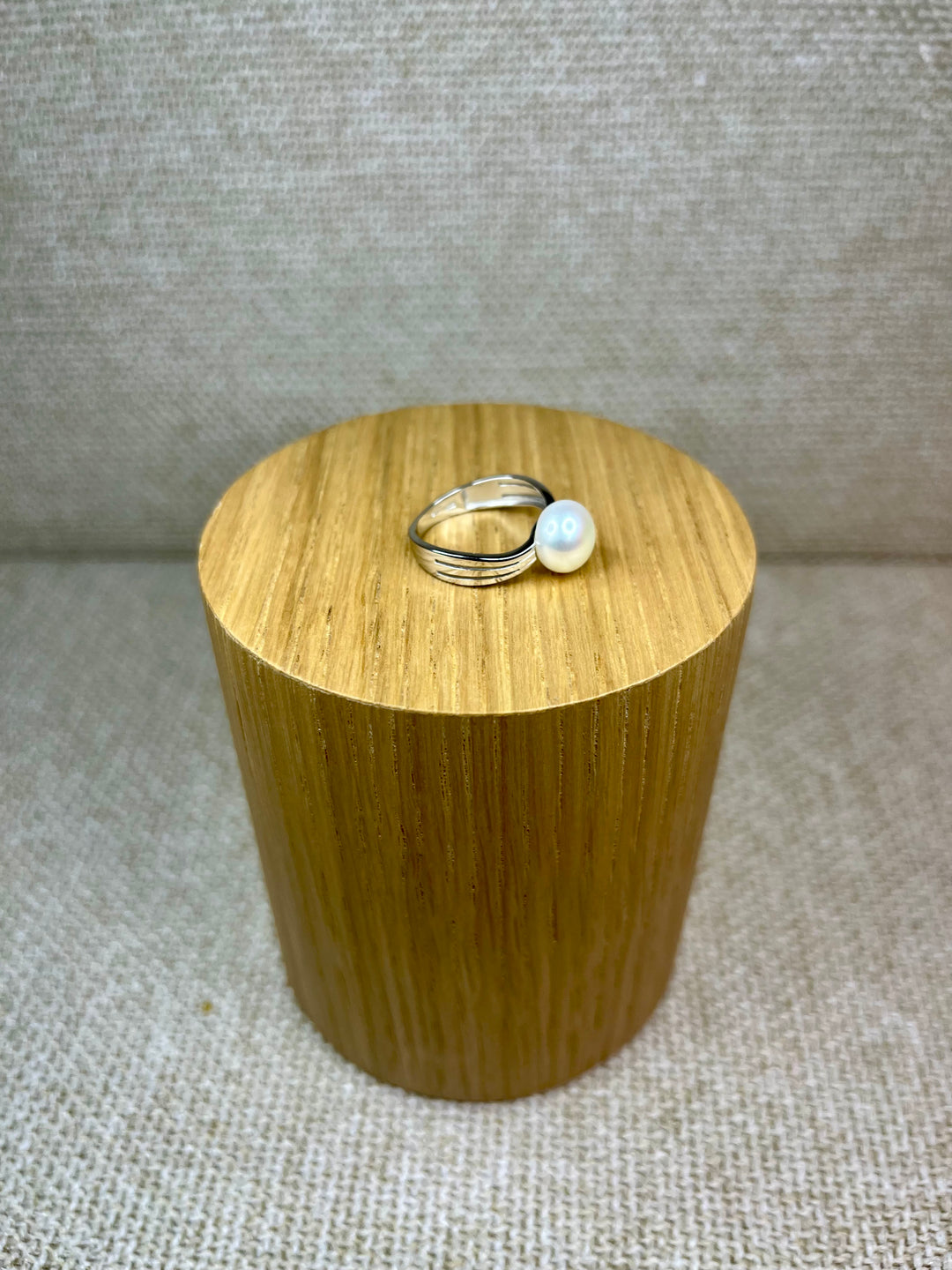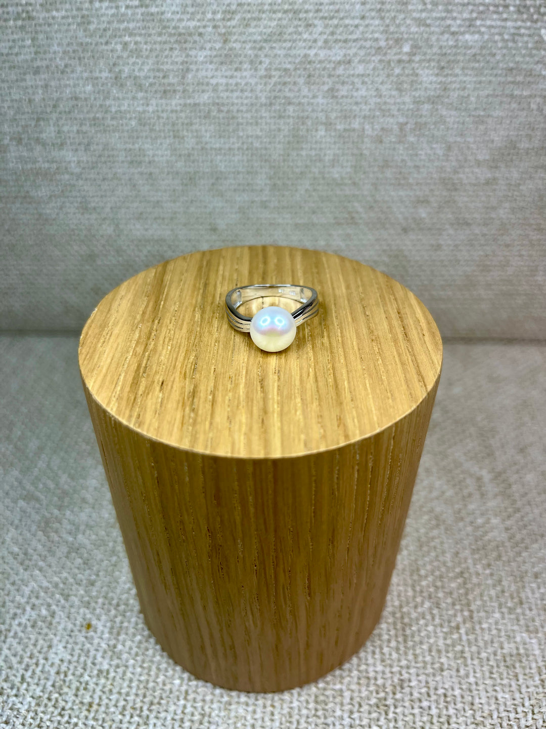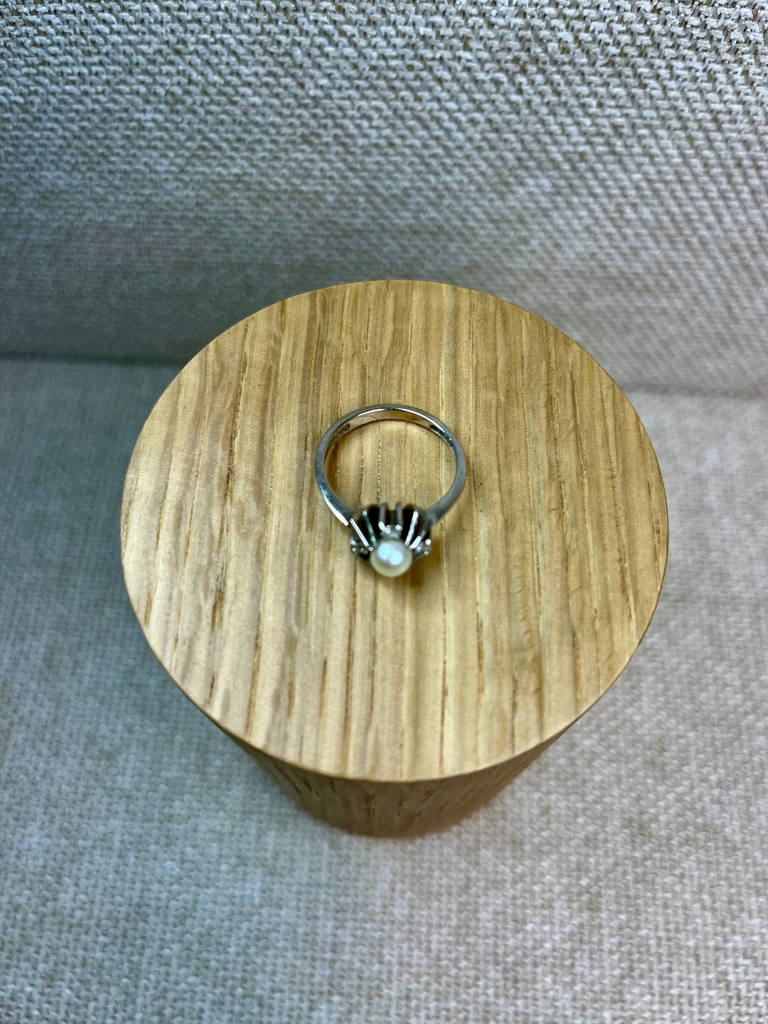 Aag. 14 kt. hvidguldsring m. ferskvandsperle.
