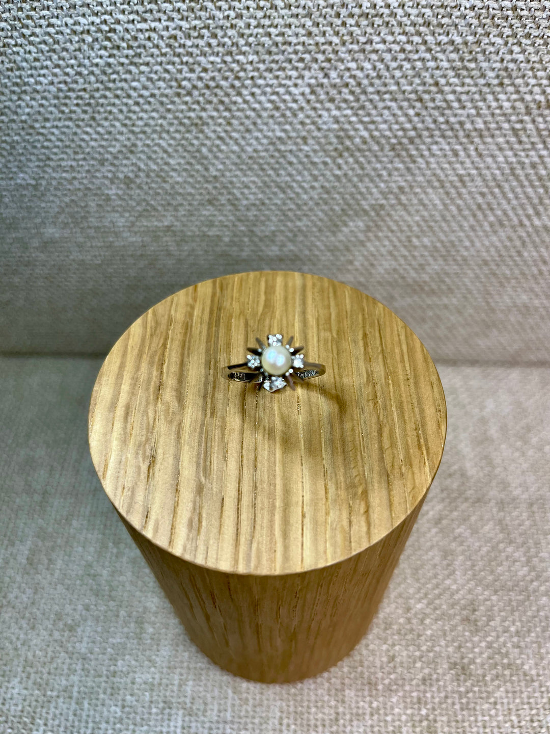 14 kt. hvidgulds ring m. kulturperle og 0,07 ct.